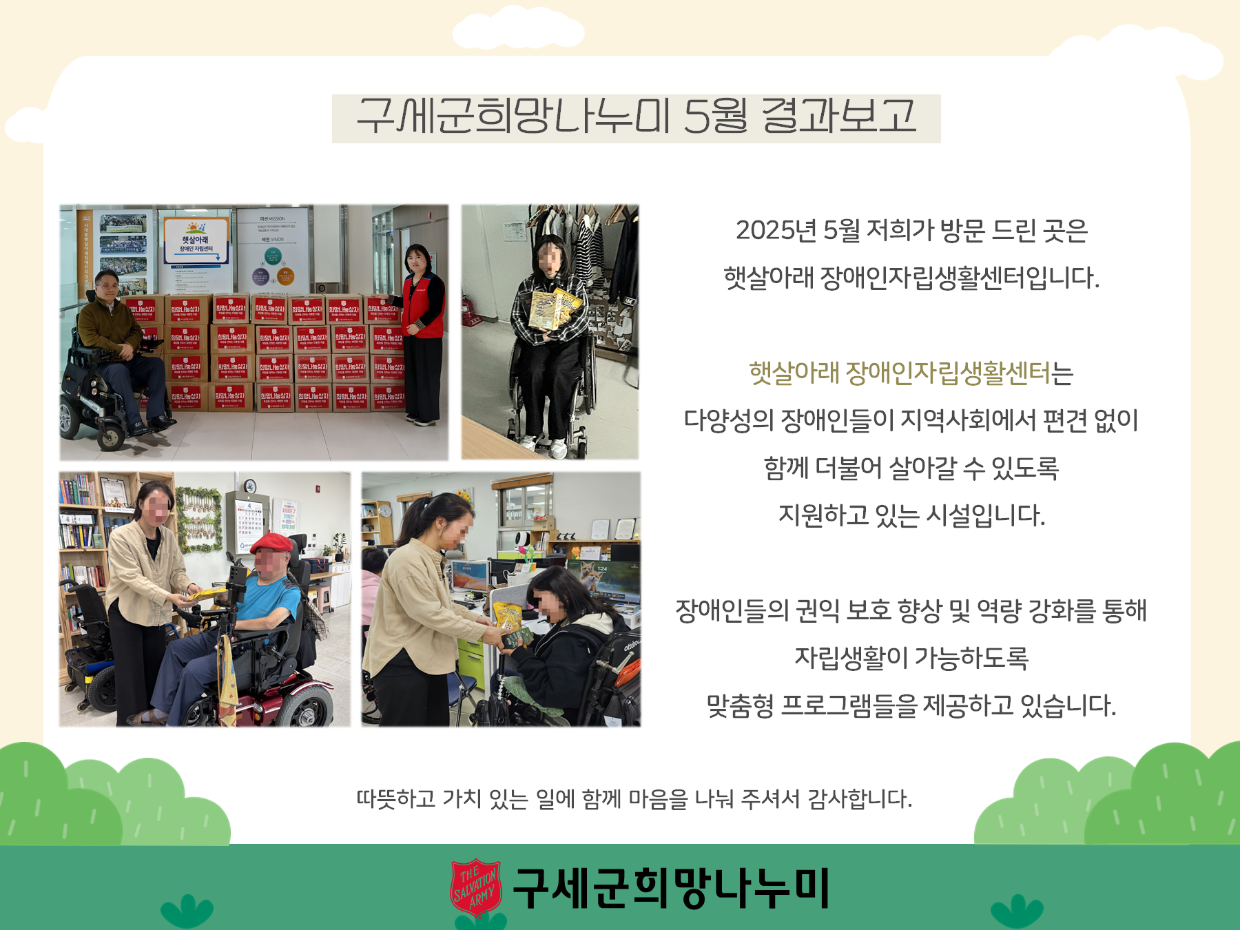 구세군희망나누미를 통해 따뜻한 손길 함께해 주셔서 감사합니다.