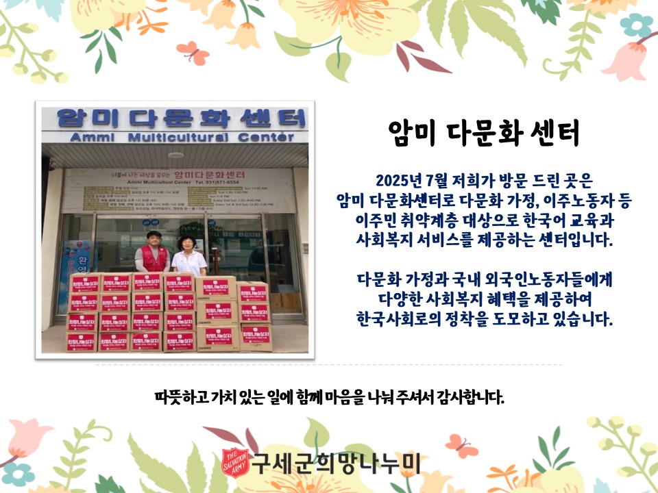 구세군희망나누미를 통해 따뜻한 손길 함께해 주셔서 감사합니다.