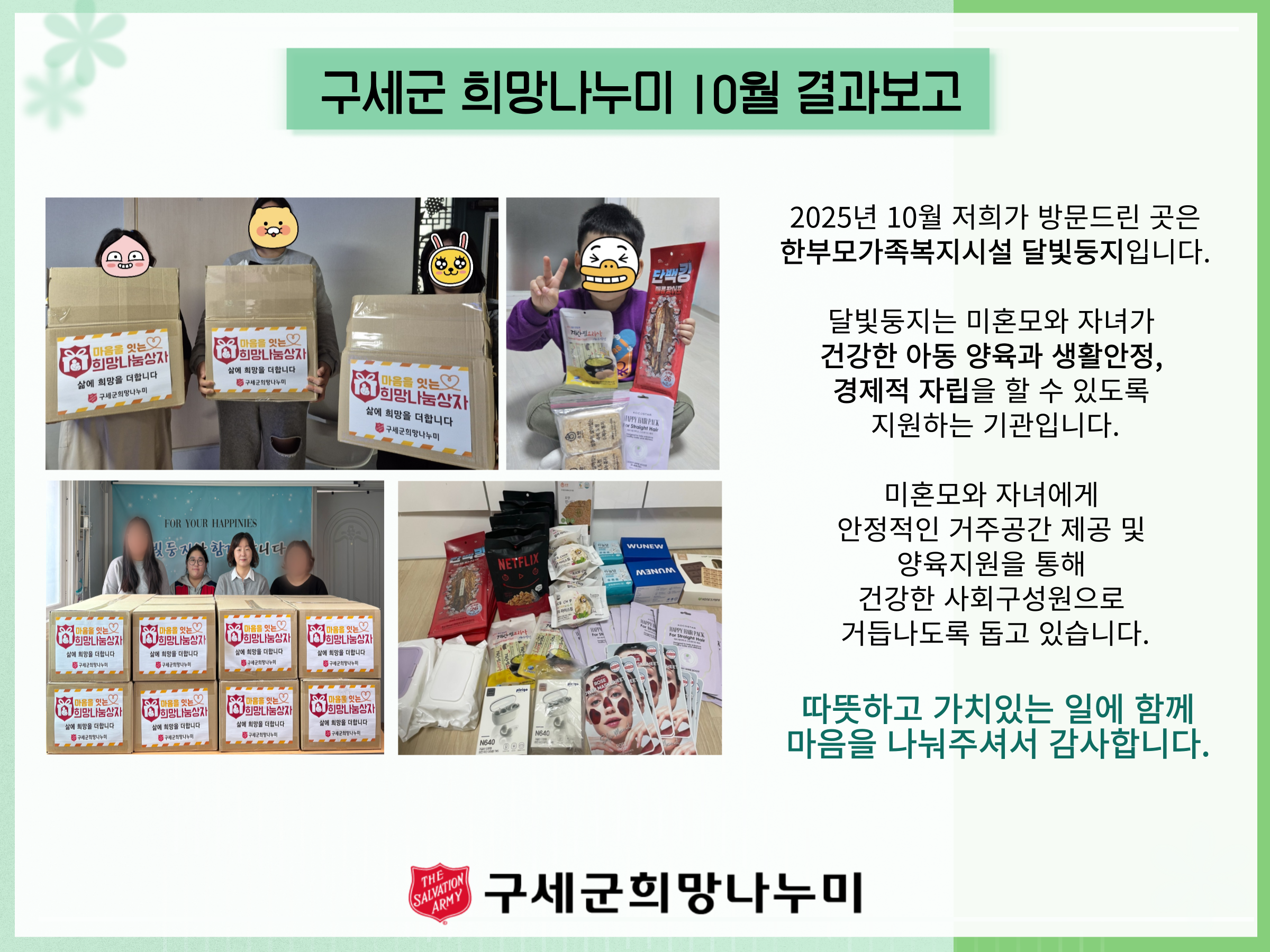 구세군희망나누미를 통해 따뜻한 손길 함께해주셔서 감사합니다.